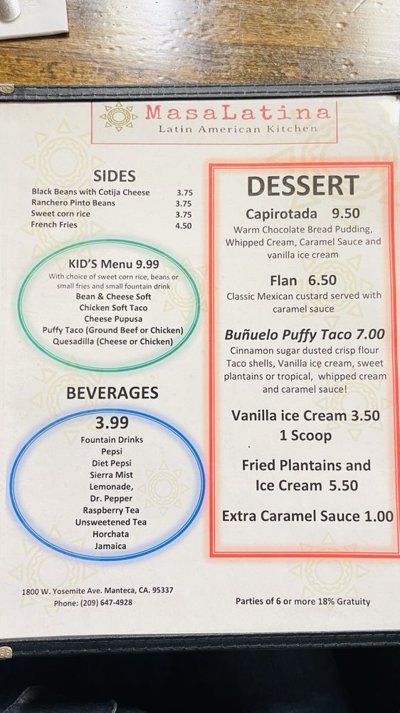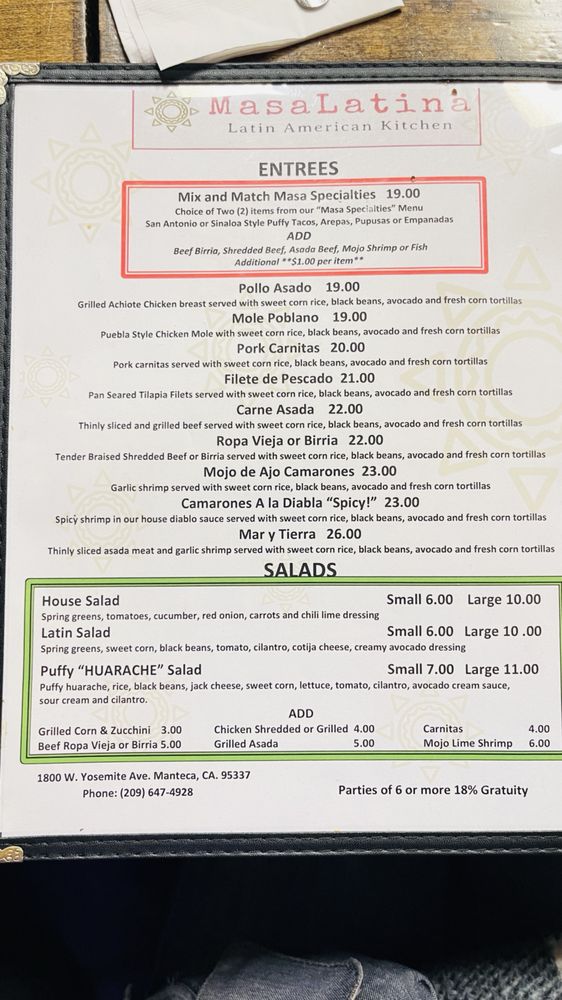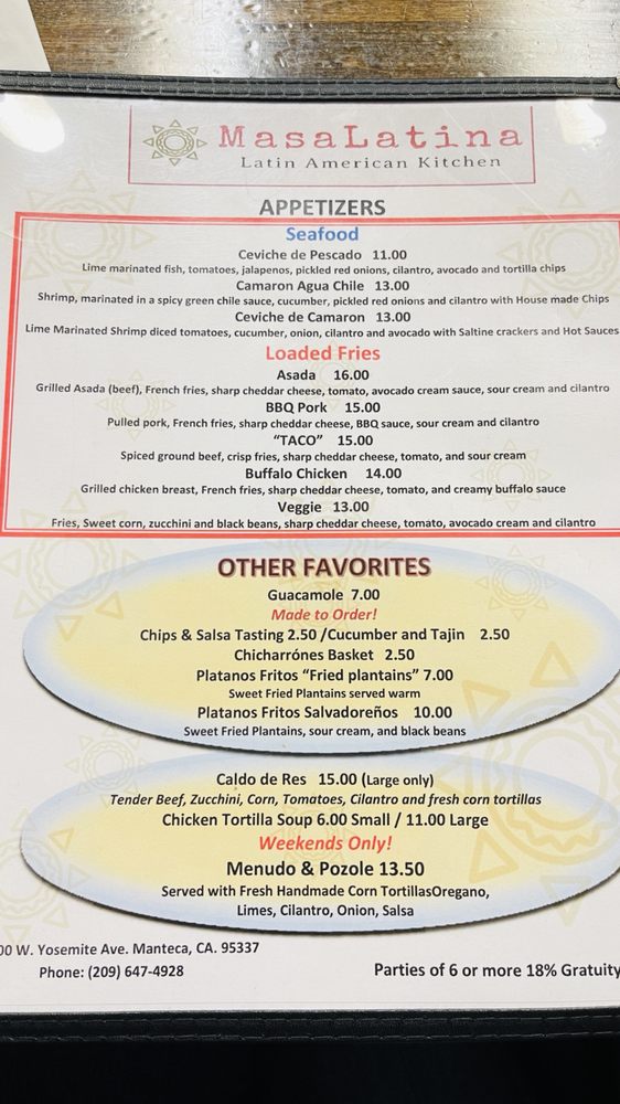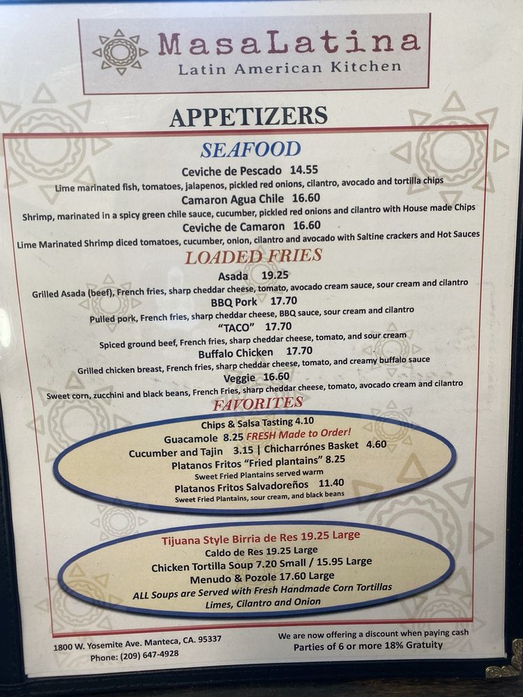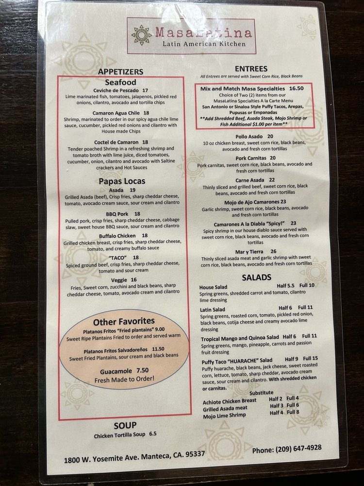 MasaLatina Latin American Kitchen Menu (Update 2025)